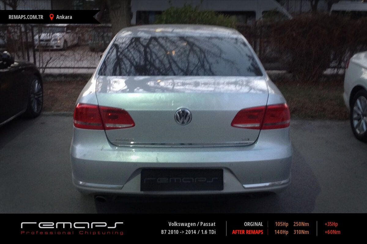 Volkswagen Passat model dizel aracınızın ürettiği 105hp / 250nm motor gücünü, Türkiye normlarında verimli hale getirmek adına hazırladıgımız chip tuning (ecu) yazılım uygulaması sonrasında, 140hp / 310nm ’lik performans artışı öngörmekteyiz. Kazanılan + 35hp / + 60nm güç artışı sonrasında kesinlike çevreye rahatsızlık vermeyecek (duman atmayacak) şekilde eksoz emisyon değerleriniz korunarak hazırlanmaktadır.