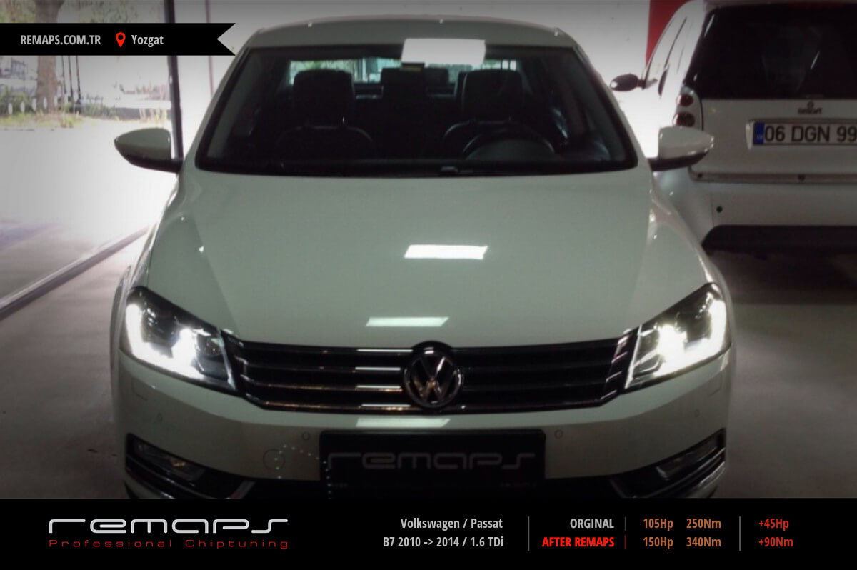 Volkswagen Passat model dizel aracınızın ürettiği 105hp / 250nm motor gücünü, Türkiye normlarında verimli hale getirmek adına hazırladıgımız chip tuning (ecu) yazılım uygulaması sonrasında, 150hp / 340nm ’lik performans artışı öngörmekteyiz. Kazanılan + 45hp / + 90nm güç artışı sonrasında kesinlike çevreye rahatsızlık vermeyecek şekilde eksoz emisyon değerleri korunarak hazırlanmaktadır.
