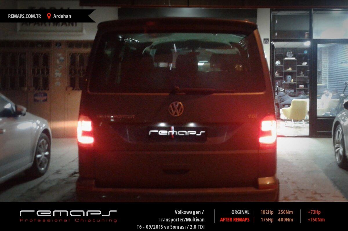 Volkswagen Transporter/Multivan model dizel aracınızın ürettiği 102hp / 250nm motor gücünü, Türkiye normlarında verimli hale getirmek adına hazırladıgımız chip tuning (ecu) yazılım uygulaması sonrasında, 175hp / 400nm ’lik performans artışı öngörmekteyiz. Kazanılan + 73hp / + 150nm güç artışı sonrasında kesinlike çevreye rahatsızlık vermeyecek (duman atmayacak) şekilde eksoz emisyon değerleriniz korunarak hazırlanmaktadır.